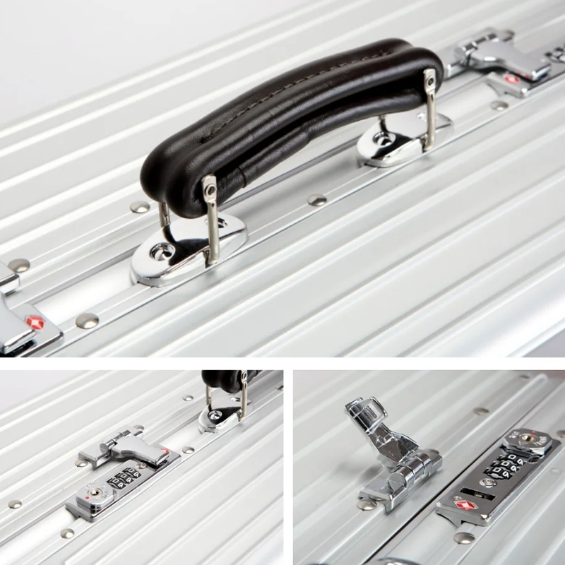 Equipped with upgraded TSA-approved locks. Seamlessly open and close your suitcase with your 3-digit combo code. Finished with a premium leather top handle, designed for a comfortable grip and refined feel.