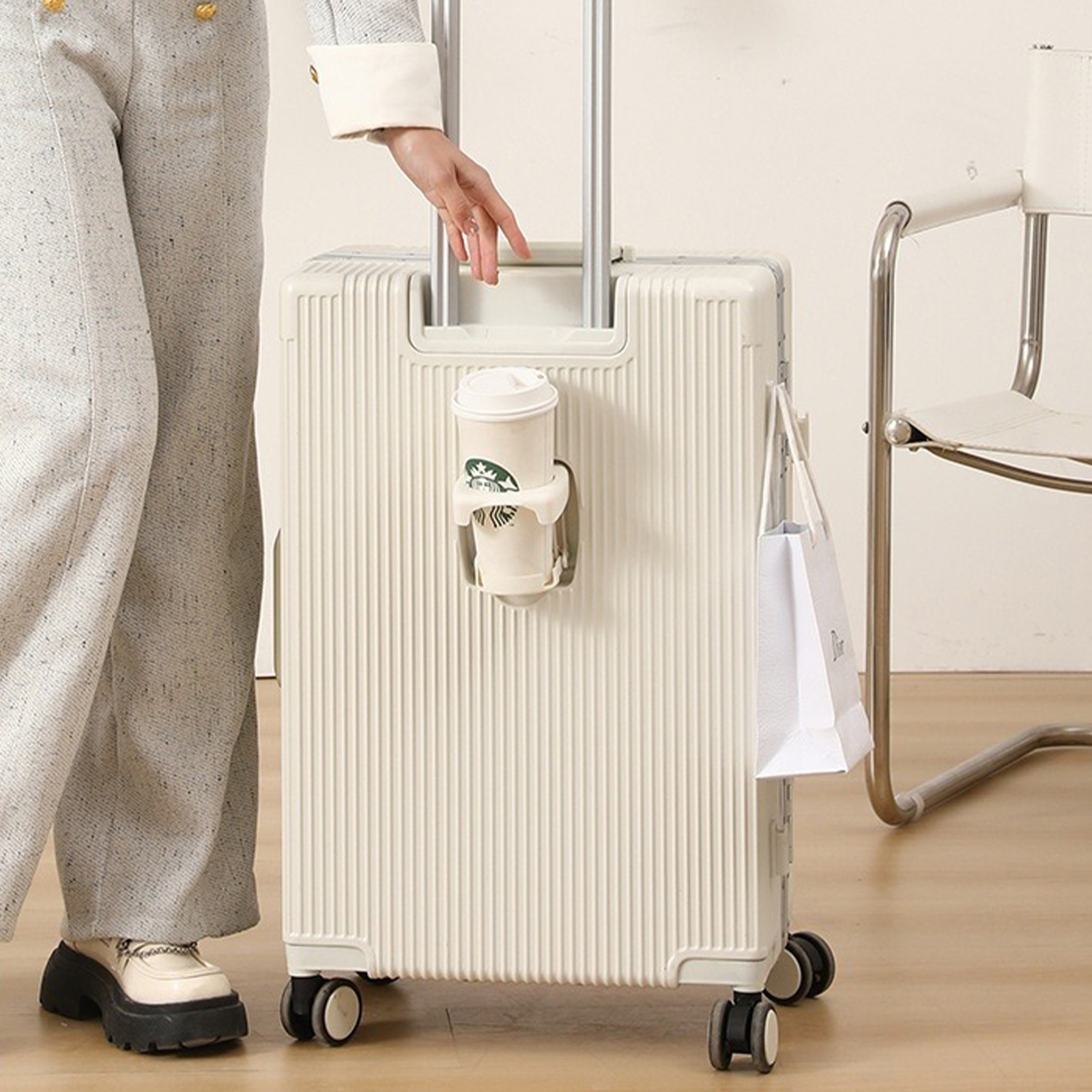 Patented pop-out cupholder on the rear of the luggage folds up flat when not in use. Close-fitting hook to free your hands.